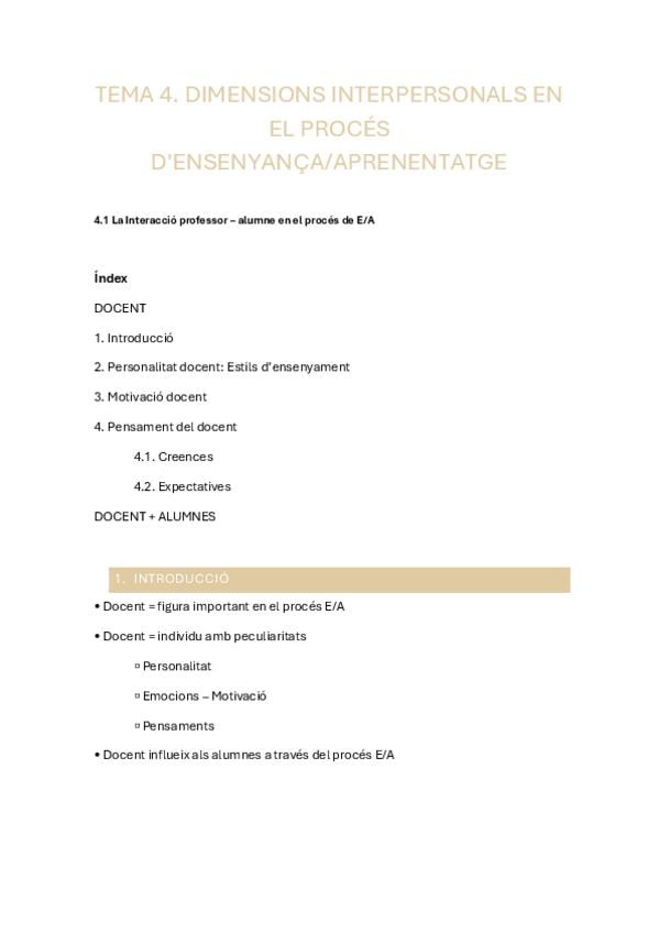 Este es el tema 4 de psicología y educación con la teoría del docente y sus comentarios y anotaciones