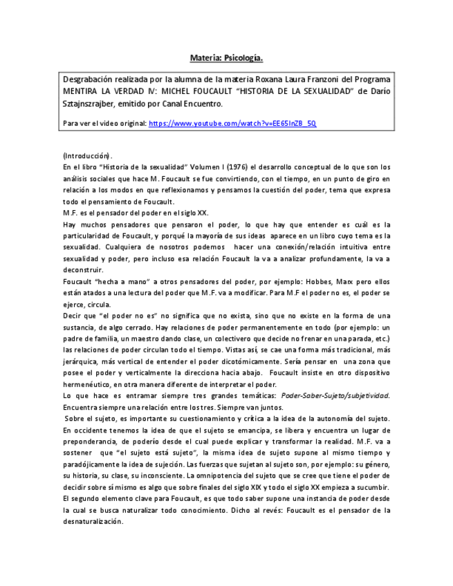 He publicado nuevos otros de 1º Psicología: 05-Desgrabacion-Mentira-la-verdad-Dario-Sz-Foucault.pdf