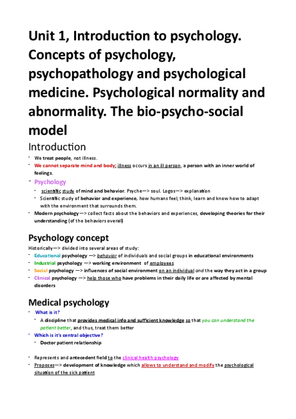 Todos los temas de Psicología de 2º medicina en ingles