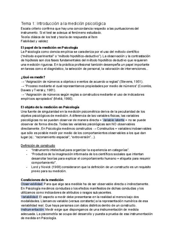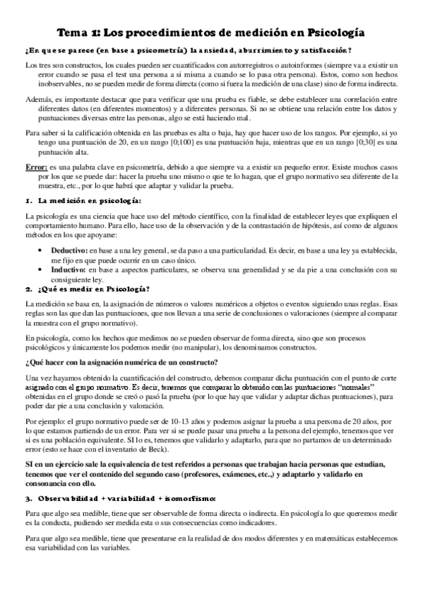 Apuntes Parcial 1 Psicometria (Temas 1-5)