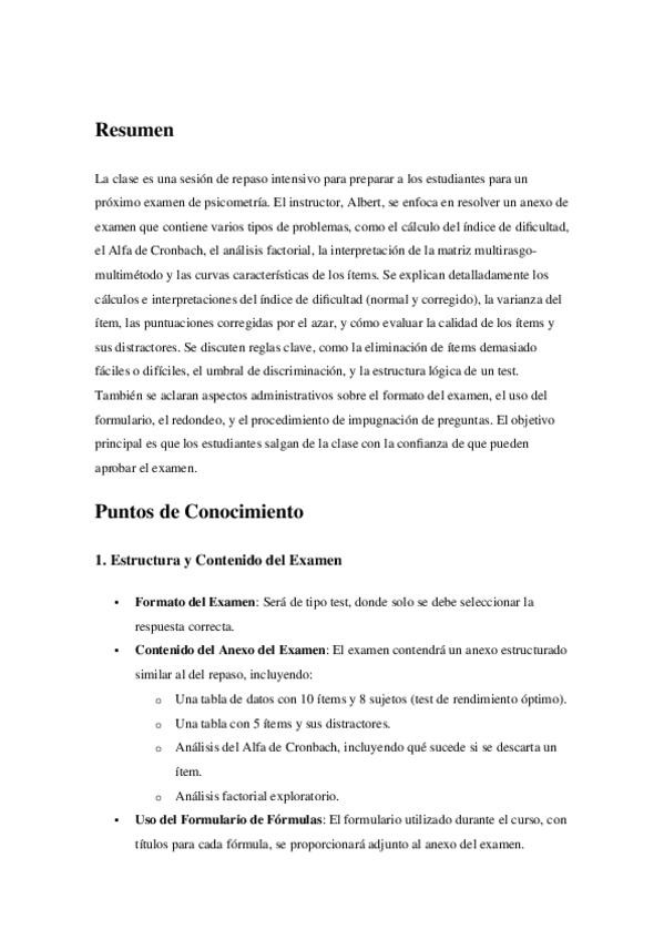 Apuntes detallados, pero en forma de esquemas, de los temarios de psicometría. Incluye análisis de los ítems, fiabilidad, validez, análisis factorial y teoría de respuesta al ítem