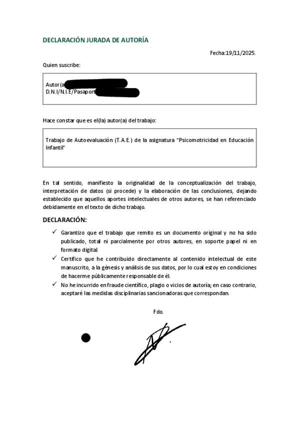 Hola, he vuelto a subir el capítulo 3, ya que tenía un error. En el apartado AMBIENTES DE APRENDIZAJE Y RINCONES MOTORES, en el tercer párrafo, tercera línea, sobre la palabra “ni”, la frase correcta es: “Los ambientes de aprendizaje son espacios transformados para que sean utilizados sin indicación docente con un fin concreto (Blández, 1995)”. Solo hay que quitar el “ni” que va antes de “con un fin concreto”. https://wuolah.com/apuntes/psicomotricidad-en-educacion-infantil/psicomotricidad-capitulo-3-apuntes-resumen-pdf-12635694?utm_source=wuolah&utm_medium=referral&utm_campaign=file-sharefile&referral=g_mlia36