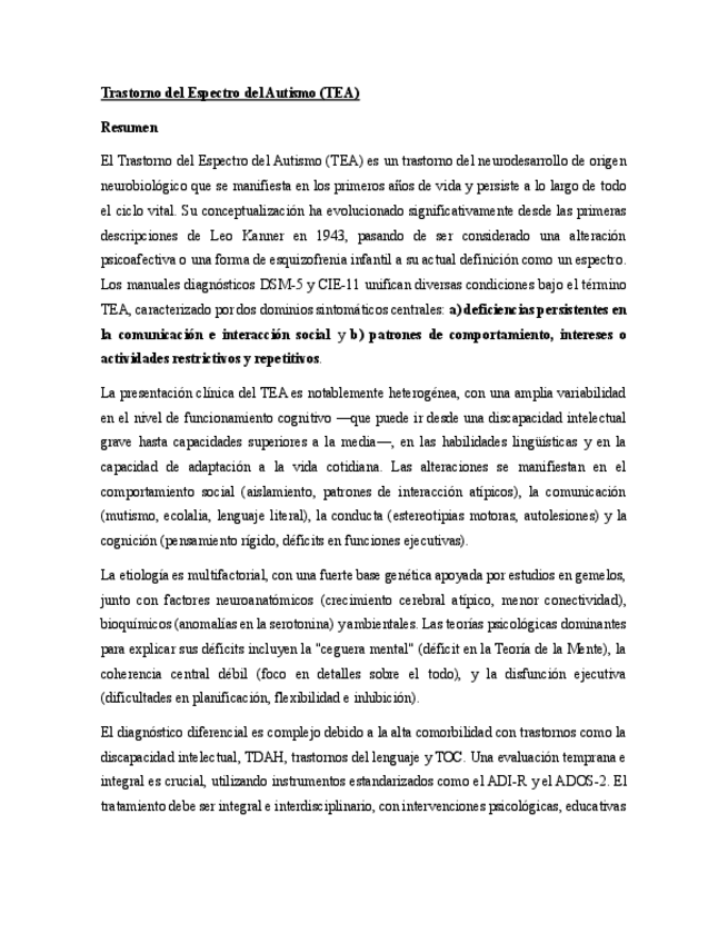 Resumen breve de los temas: TEA TDA-TDAH ESTRES DISFUSIONES SEXUALES, TRANSTORNO PARAFILICOS, DISFORIA DE GENERO CONSUMO DE SUSTANCIAS