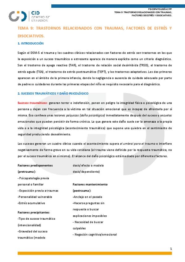 He publicado nuevos apuntes de 4º Psicopatología: PSP T.6 (3º): Trastornos por traumas y estrés.pdf