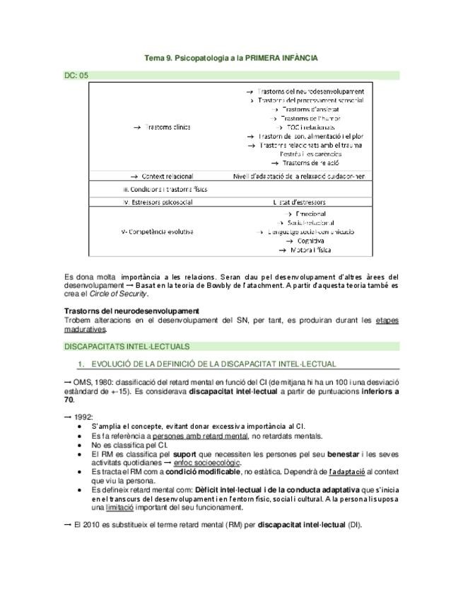 Apunts basats en la guia, esquema i bibliografia obligatòria. (Preguntes inicials, psicopatologia de la primera infància i trastorns del neurodesenvolupament: Discapacitat Intel·lectual (S. de Down i S. d'X Fràgil) i Trastorn de l'Espectre Autista.