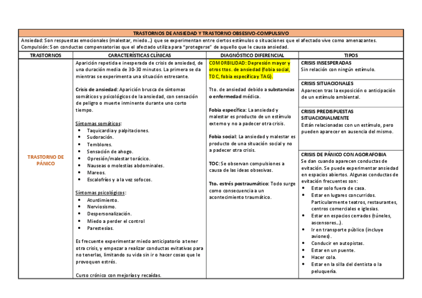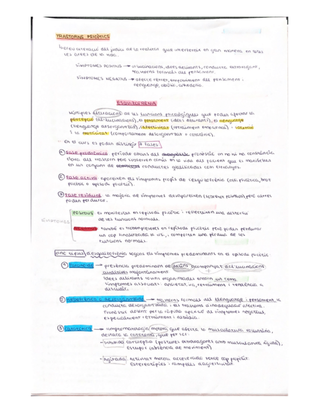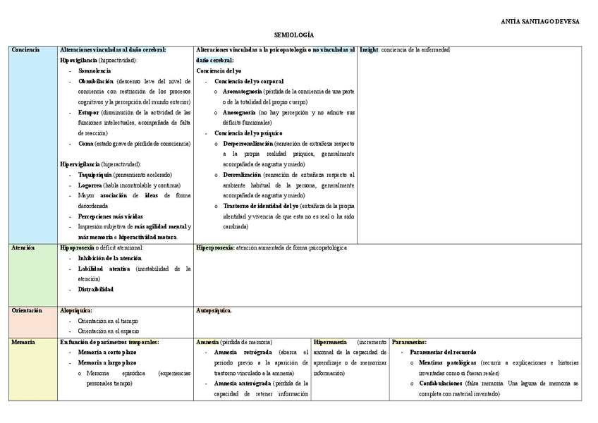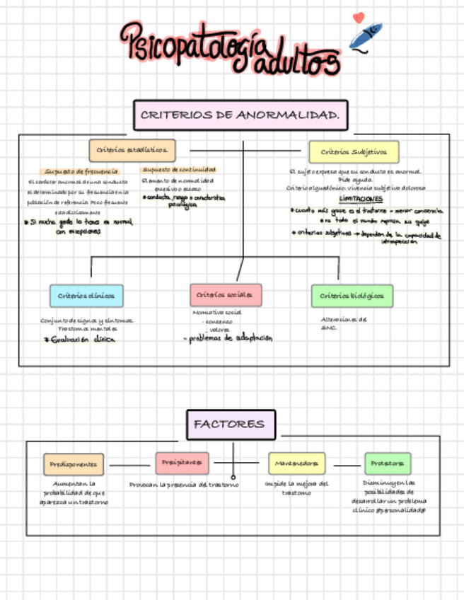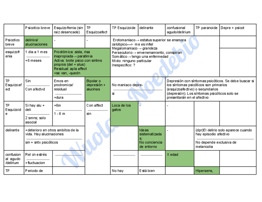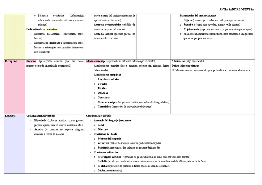 Apuntes para el estudio de la PS de Psicopatología de adultos. Con colores y tablas que facilitan la memorización y la comprensión.