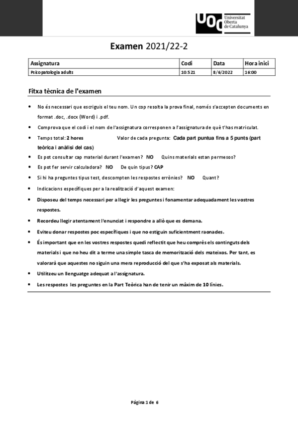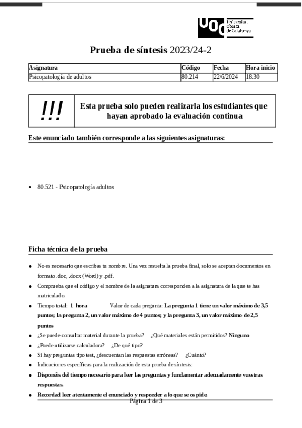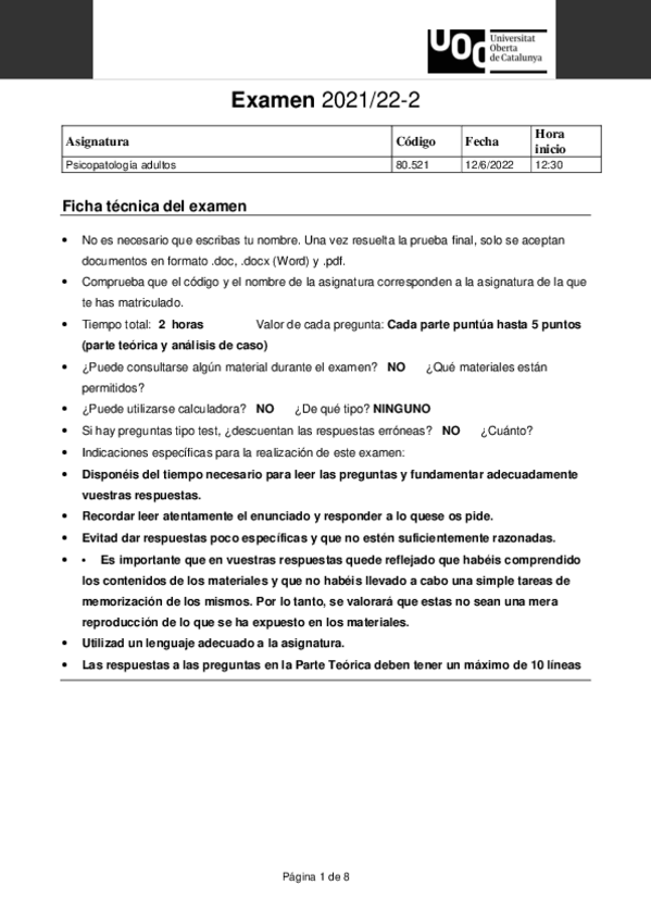 Exámenes Psicopatología de Adultos