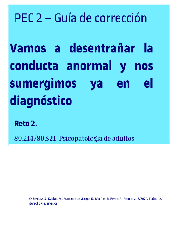 Soluciones y enunciados de los 3 retos de psicopatología de adultos. Año 2024_1