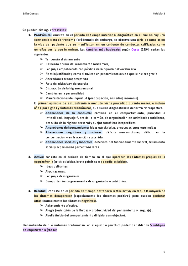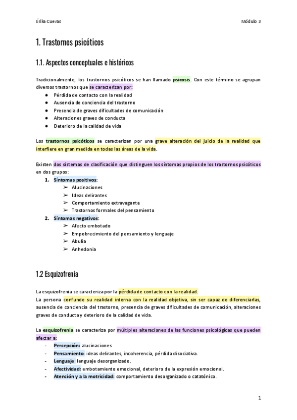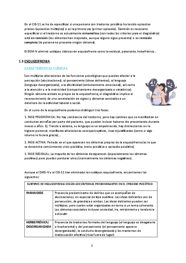 Resumen módulo 2. Apuntes para el estudio de la PS de Psicopatología de adultos. Con colores y tablas que facilitan la memorización y la comprensión.