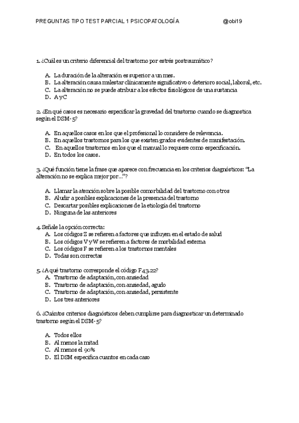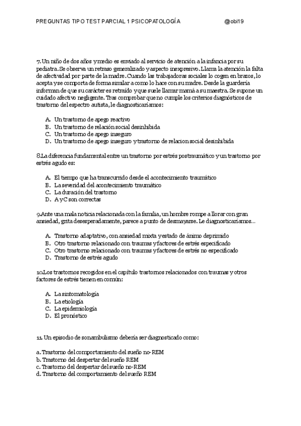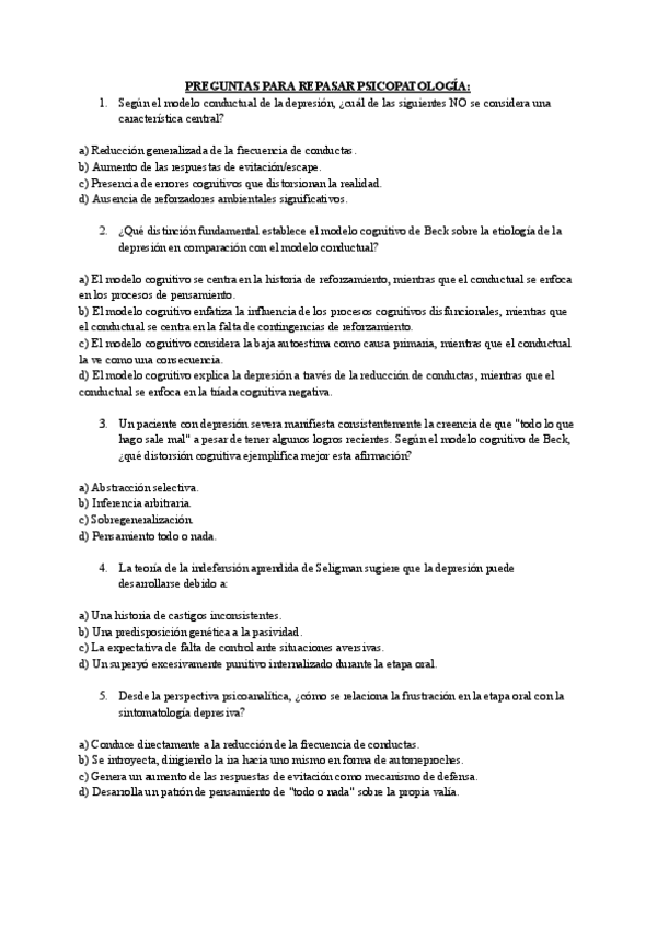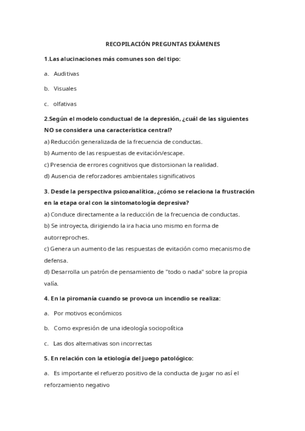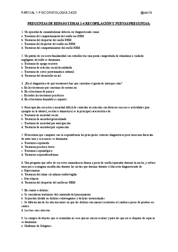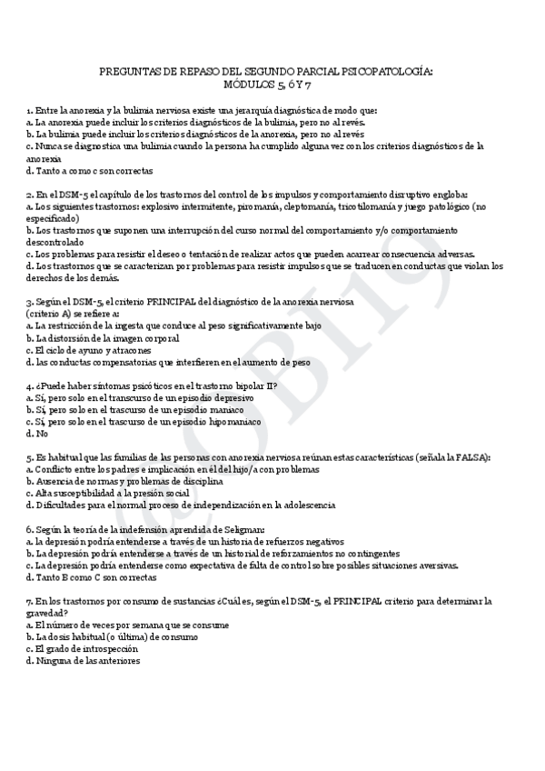Recopilación de preguntas de otros años y nuevas para repasar el parcial 1 de psicopatología