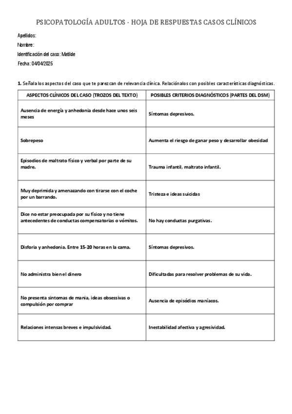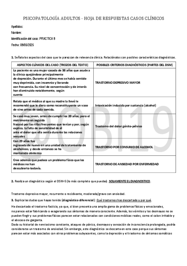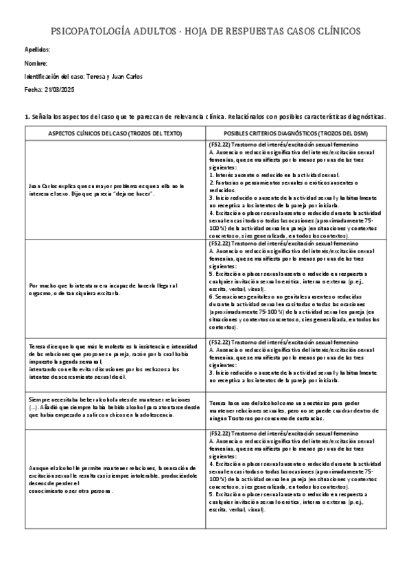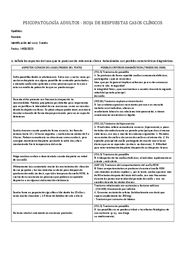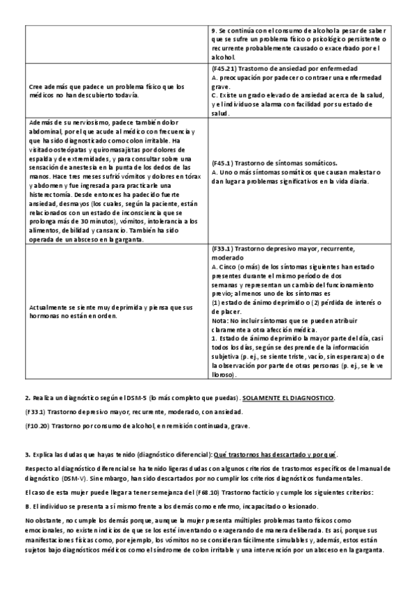 apuntes, casos practicos, explicacion sintomatologico del dsm y preguntas evaluación