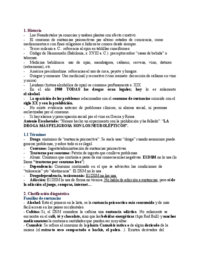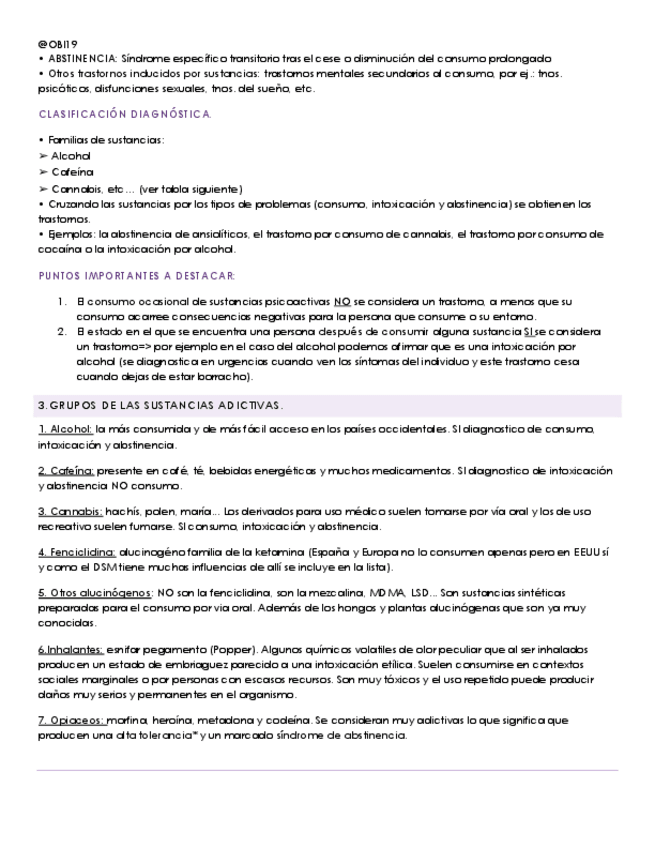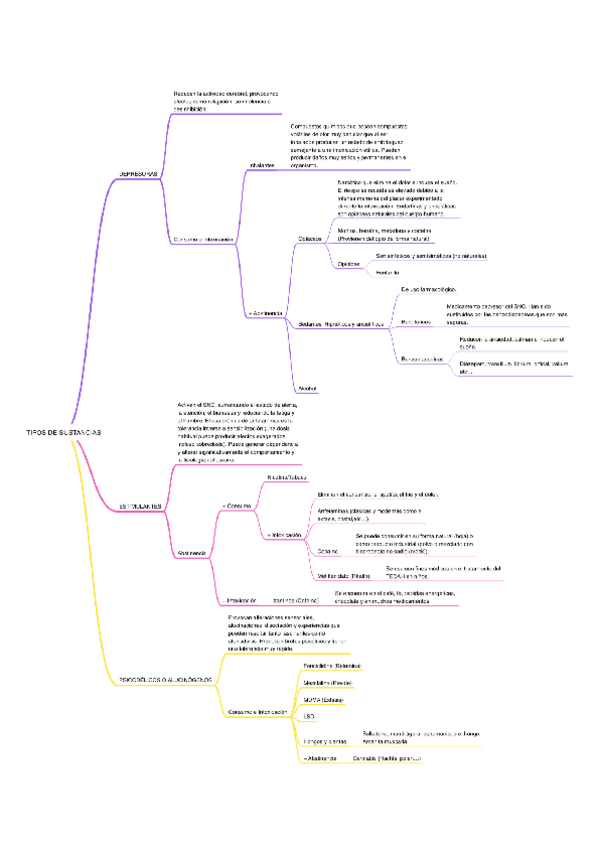 Esquema con todas las sustancias por tipos y lo que producen (t. por consumo, abstinencia e intoxicación)