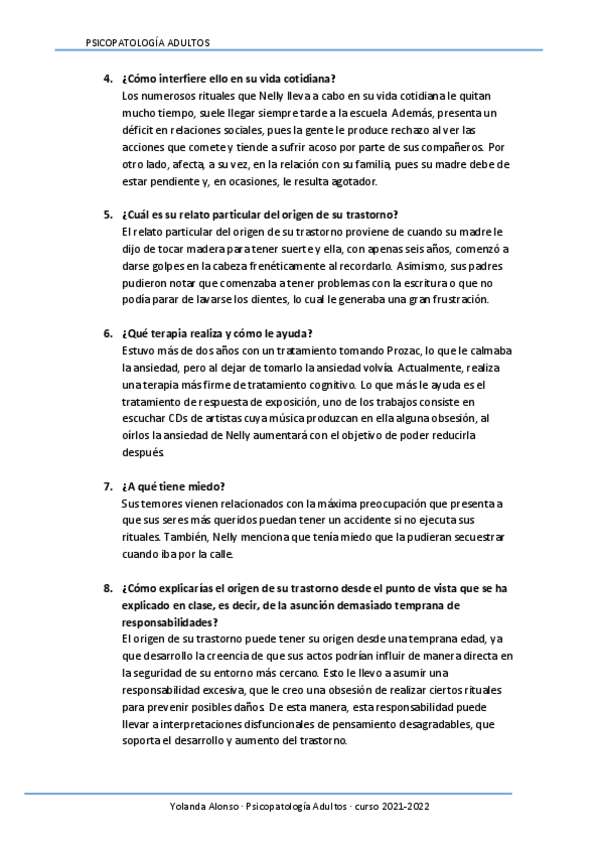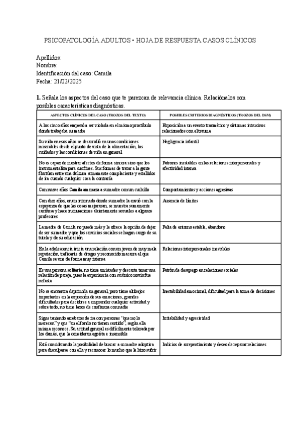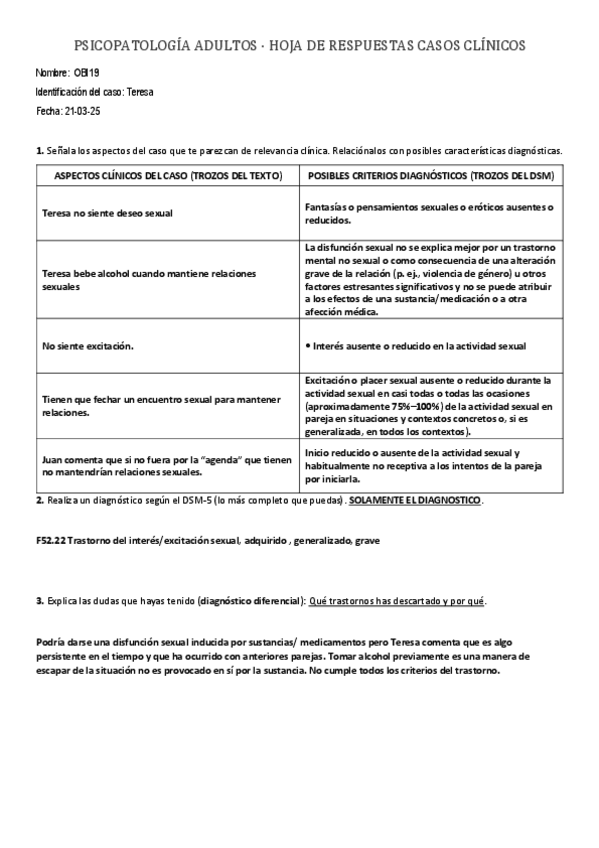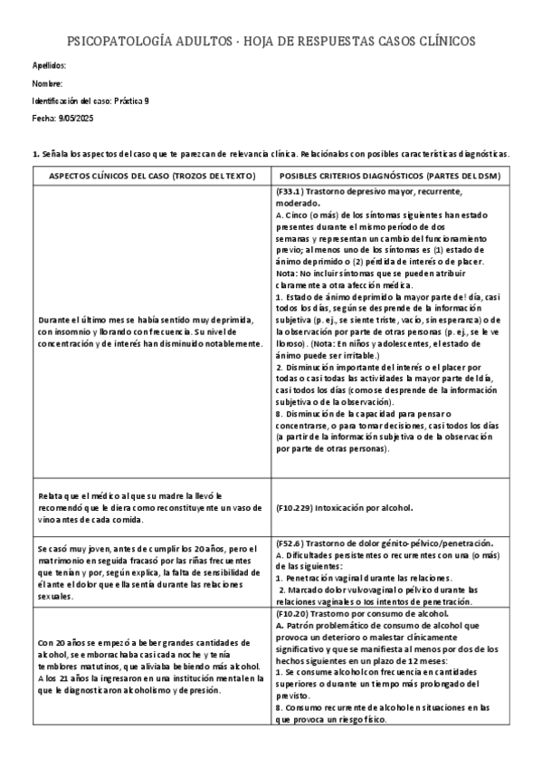 apuntes, casos practicos, explicacion sintomatologico del dsm y preguntas evaluación