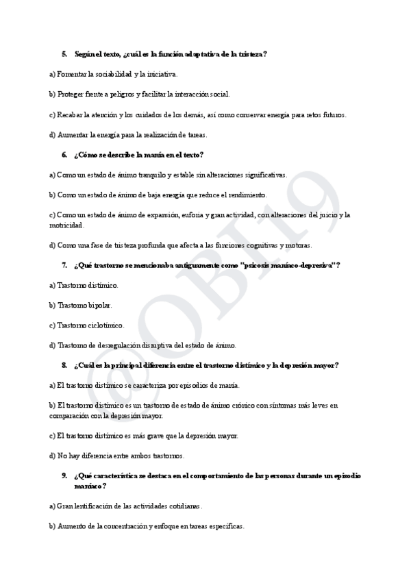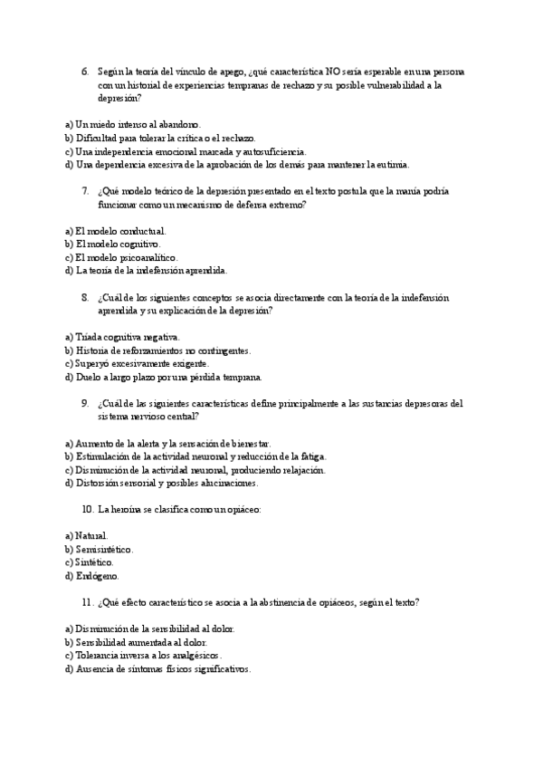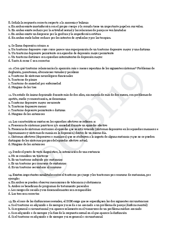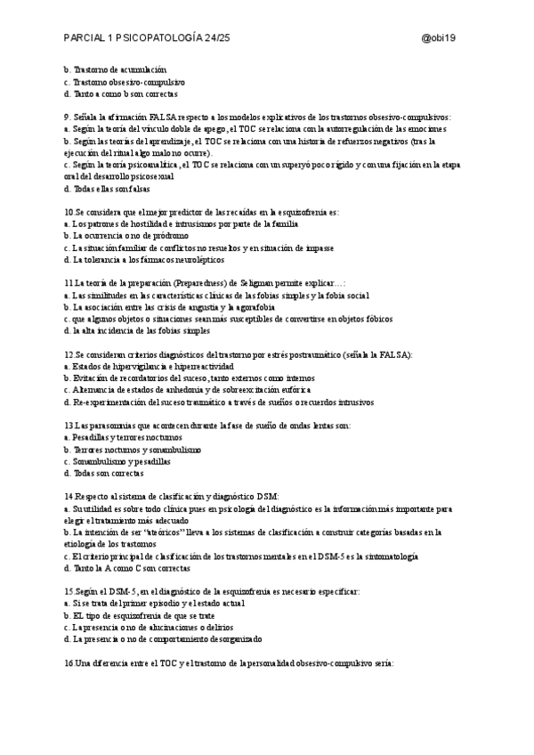 Recopilación de preguntas de otros años y nuevas para repasar el parcial 1 de psicopatología