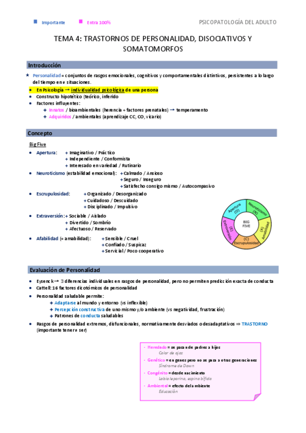 He publicado nuevos apuntes de 3º Psicopatología del Adulto: Tema 4: T. Personalidad, Disociativos y Somatomorfos.pdf