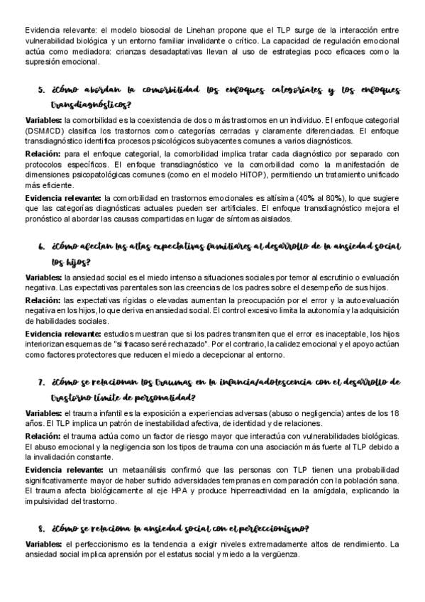 Preguntas cortas presentadas a modo de simulacro de examen en la segunda tutoría grupal de la asignatura Psicopatología General. Curso 25/26