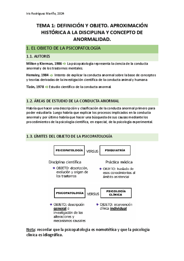 Apuntes completos año 24-25 psicopatología general - Parte de Mercedes y Ana