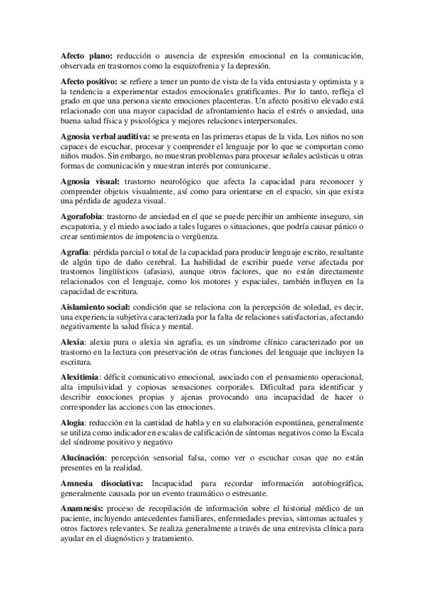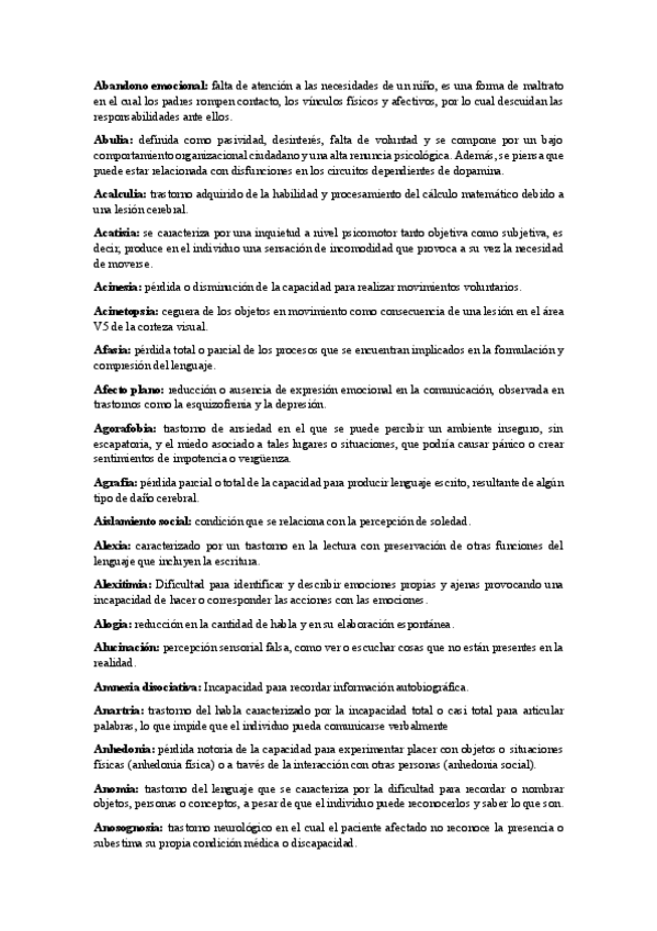 Son palabras descartando lo que el profesor indicó por correo, como definiciones de trastornos...