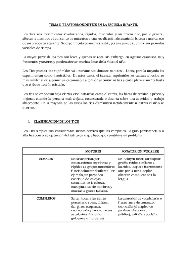He publicado nuevos apuntes de 2º Psicopatología y Salud Infantil: Tema 5, trastornos de tics en la escuela infantil..pdf