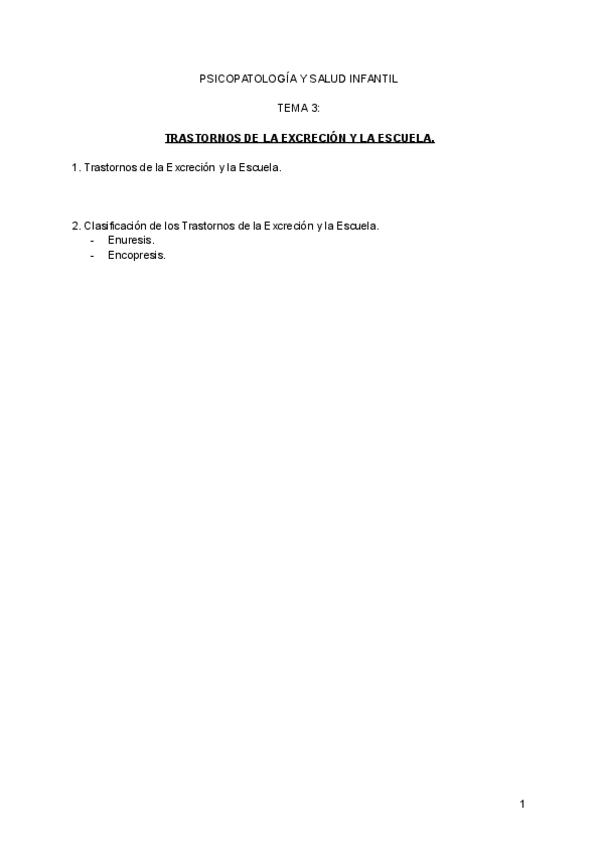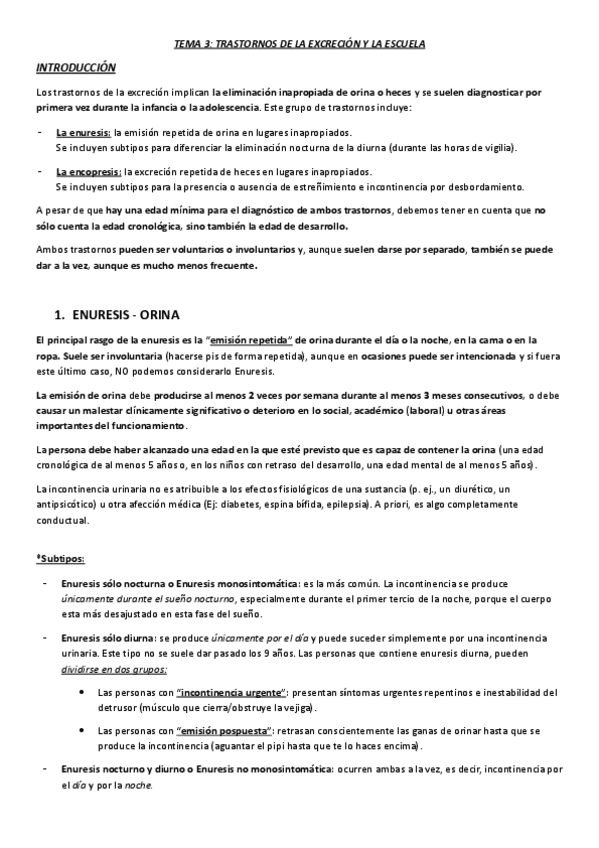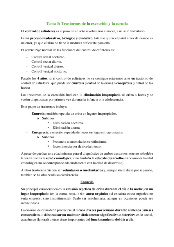 He publicado nuevos apuntes de 2º Psicopatología y Salud Infantil: Tema 3, trastornos de la excreción y la escuela..pdf