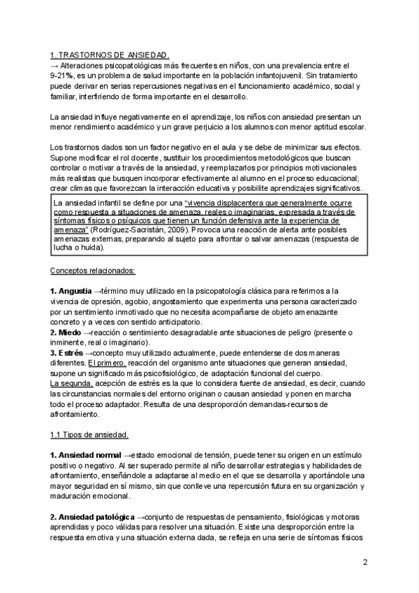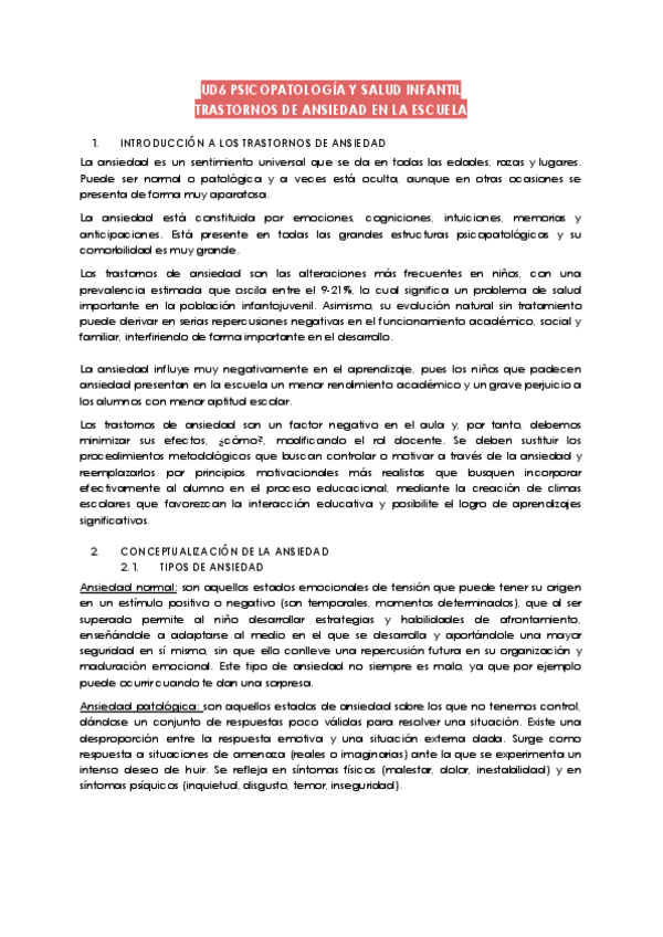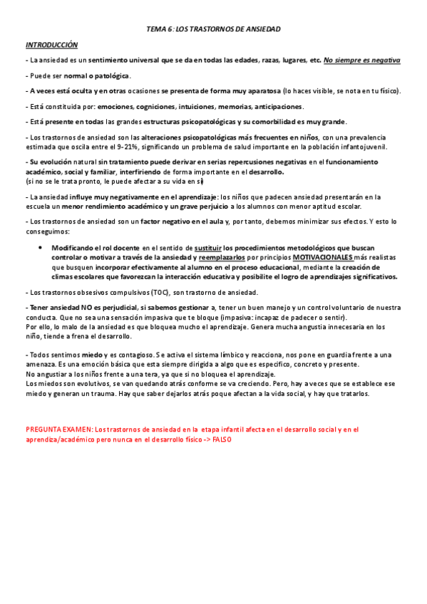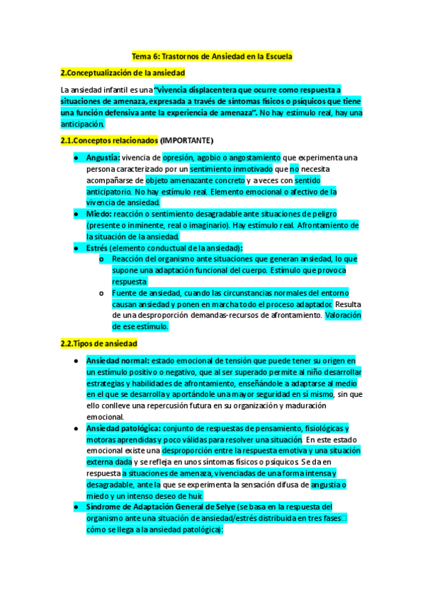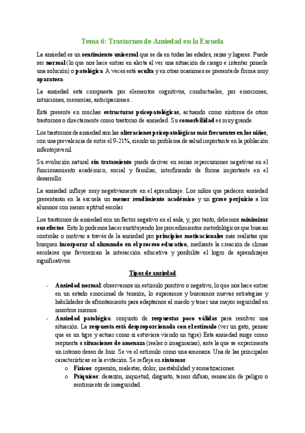 He publicado nuevos apuntes de 2º Psicopatología y Salud Infantil: Tema 6, trastornos de ansiedad en la escuela..pdf
