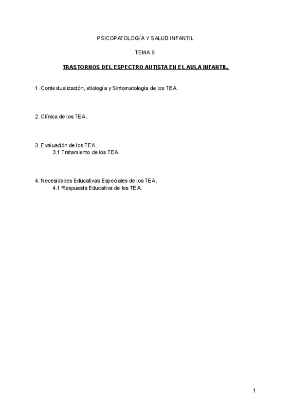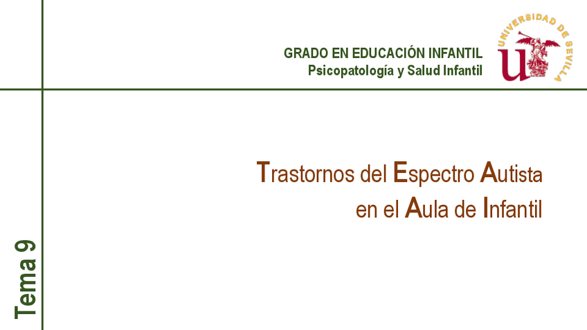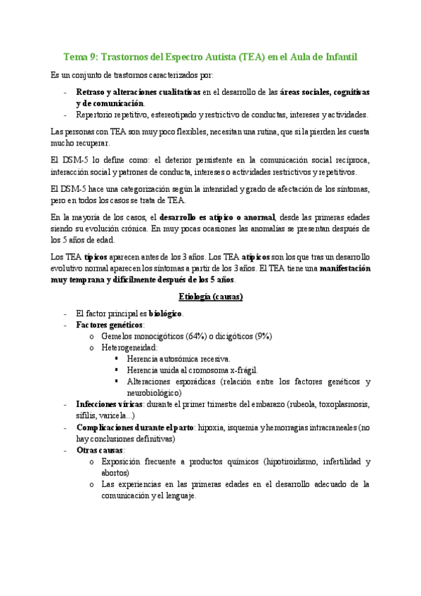 He publicado nuevos apuntes de 2º Psicopatología y Salud Infantil: Tema 9, Trastornos del Espectro Autista en el Aula de Infantil..pdf