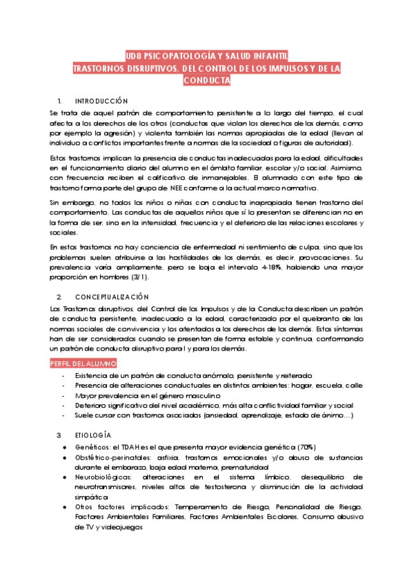 He publicado nuevos apuntes de 2º Psicopatología y Salud Infantil: Tema 8, trastornos disruptivos, del control de los niños y de la conducta..pdf