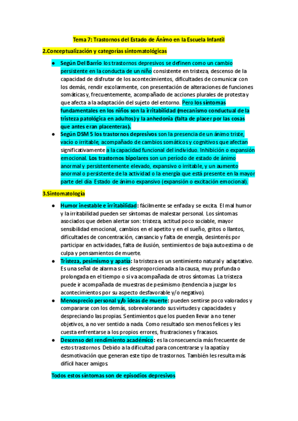 He publicado nuevos apuntes de 2º Psicopatología y Salud Infantil: Tema 7, trastornos del estado de ánimo en la escuela infantil..pdf