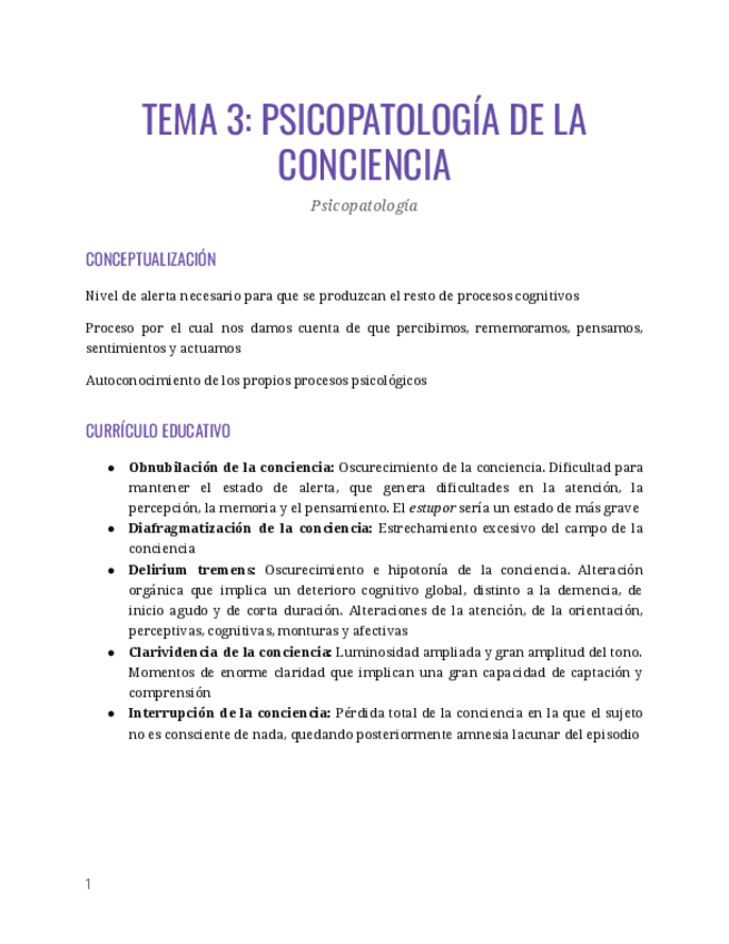 He publicado nuevos apuntes de 2º Psicopatología: psicopatologia de la conciencia..docx