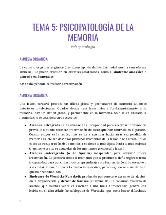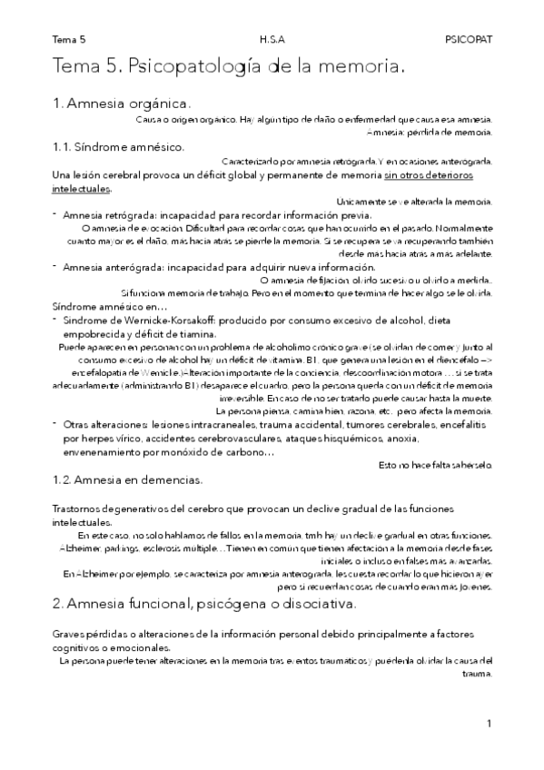 He publicado nuevos apuntes de 2º Psicopatología: psicopatología de la memoria..docx