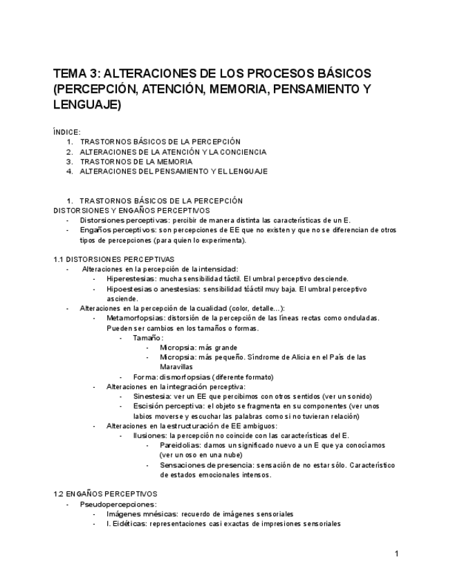 He publicado nuevos apuntes de 3º Psicopatología: Tema 3-Alteraciones de los procesos básicos percepción, atención y conciencia, memoria, pensamiento y lenguaje..pdf