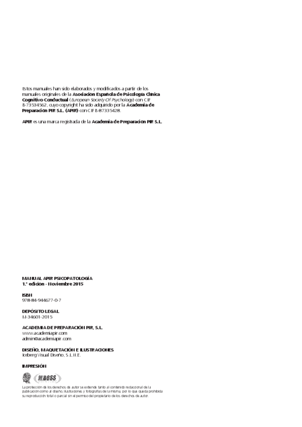 Manual de psicopatología de la academia APIR. Perfecto para tener esquemas de la asignatura y preguntas PIR explicadas