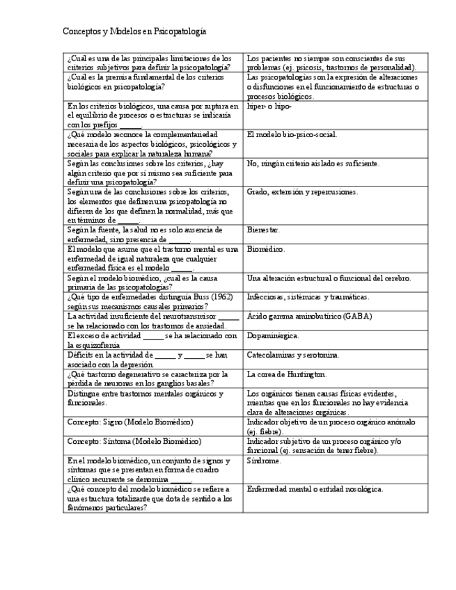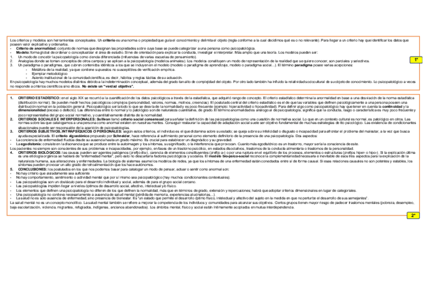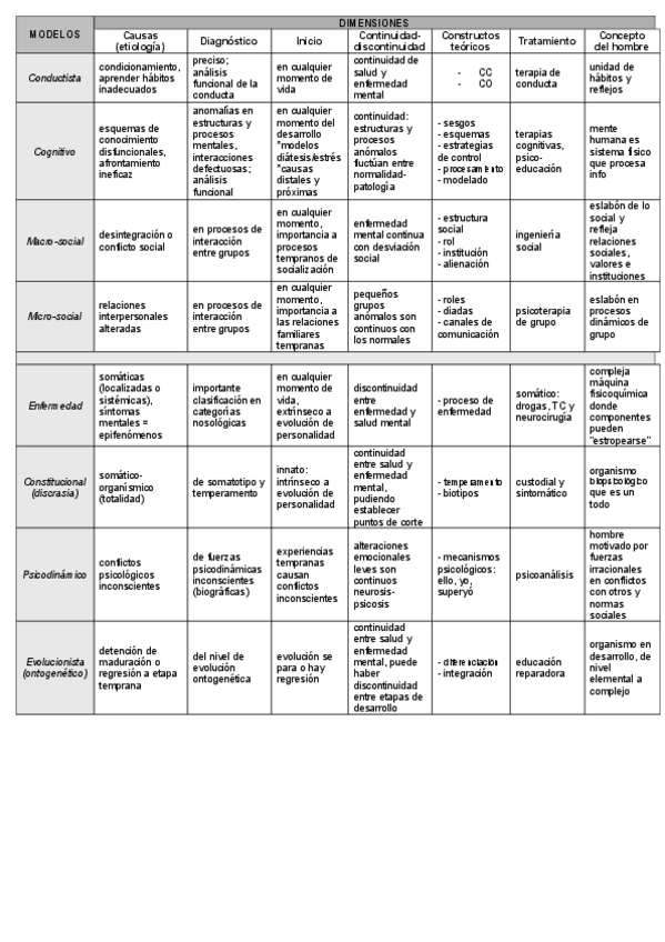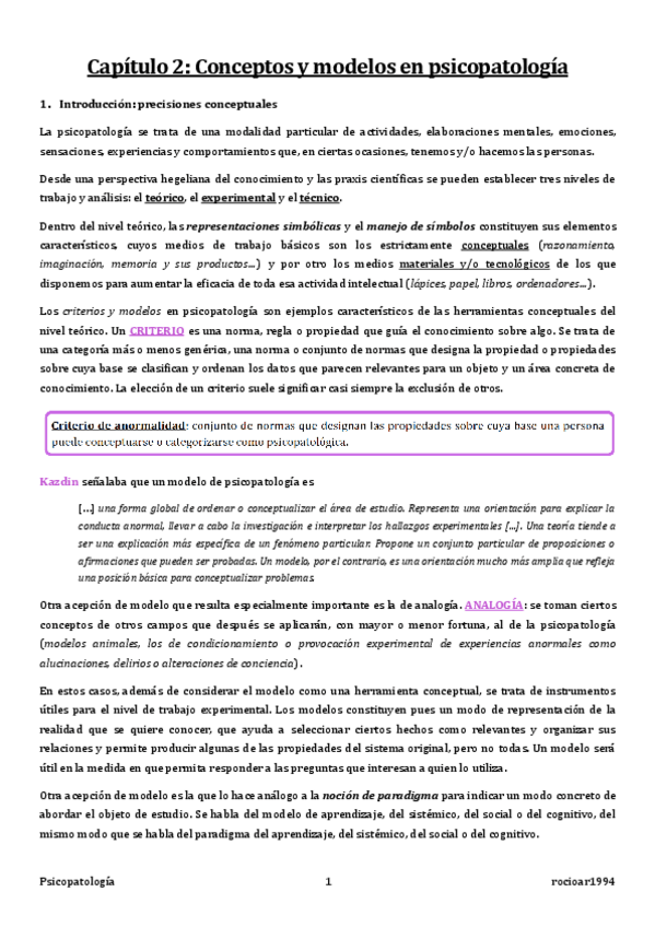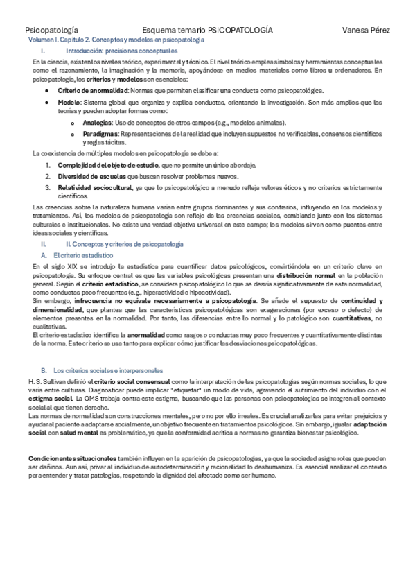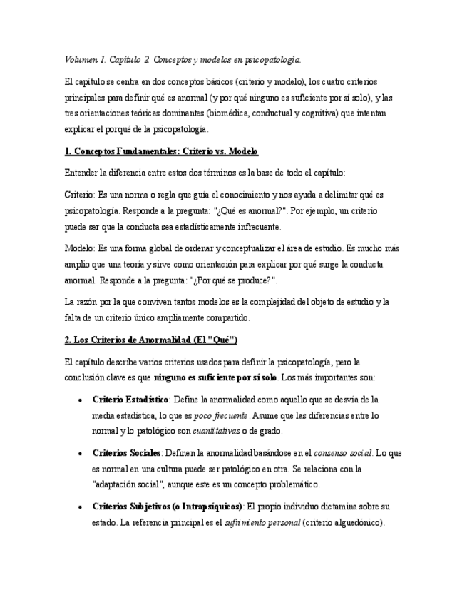 resumen del capítulo 2, vol1: “Conceptos y modelos” de la asignatura psicopatología. en los próximos días subiré una tabla complementaria de este tema.