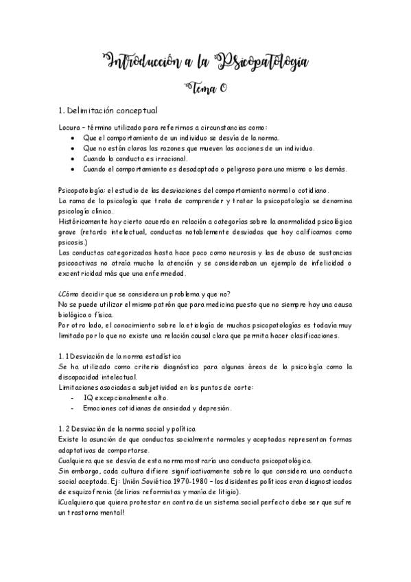 TEMARIO COMPLETO PSICOPATOLOGÍA 2022