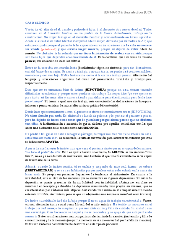 Subo el Seminario de "Entrevista en el Síndrome Depresivo" de la asignatura de Psiquiatría.