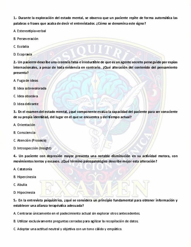 Creadores¿Cuánto sabes realmente sobre la Exploración Psiquiátrica? ¡Ponte a prueba! Hemos preparado este Examen de Exploración Clínica en Psiquiatría diseñado para desafiar tus conocimientos sobre: ✅ La Entrevista Psiquiátrica y la alianza terapéutica. ✅ El Exam