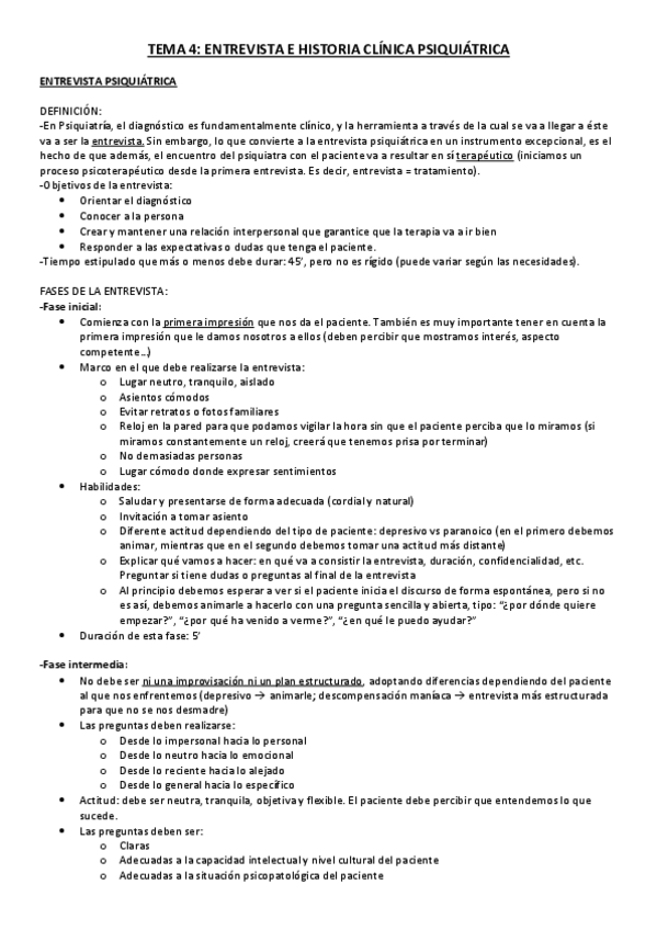 He publicado nuevos apuntes de 6º Psiquiatría: Tema 4. Entrevista e historia clínica psiquiátrica.pdf
