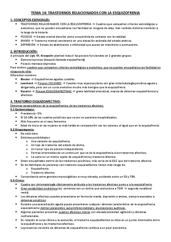 He publicado nuevos apuntes de 6º Psiquiatría: Tema 14. Trastornos relacionados con la Esquizofrenia.pdf