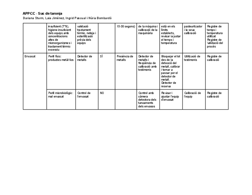 He publicado nuevos ejercicios de 4º Qualitat I Aassegurament de la Qualitat Alimentària: APPCC.pdf