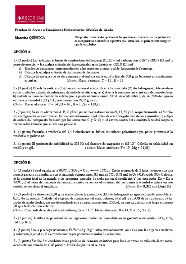 He publicado nuevos examenes de 2º Química: EXAMENES PAU