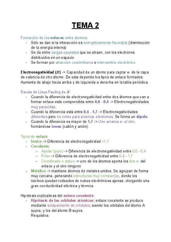 Breve resumen del tema 3 de química