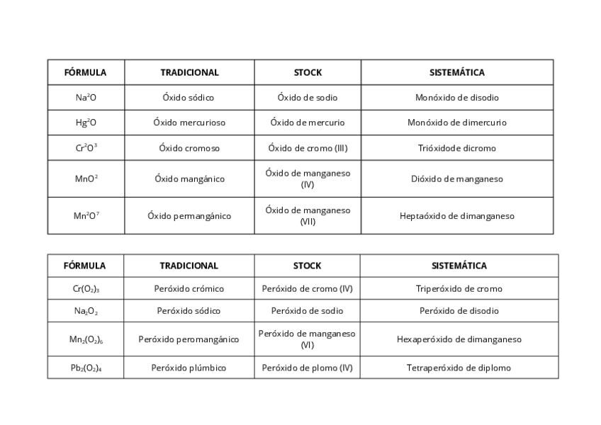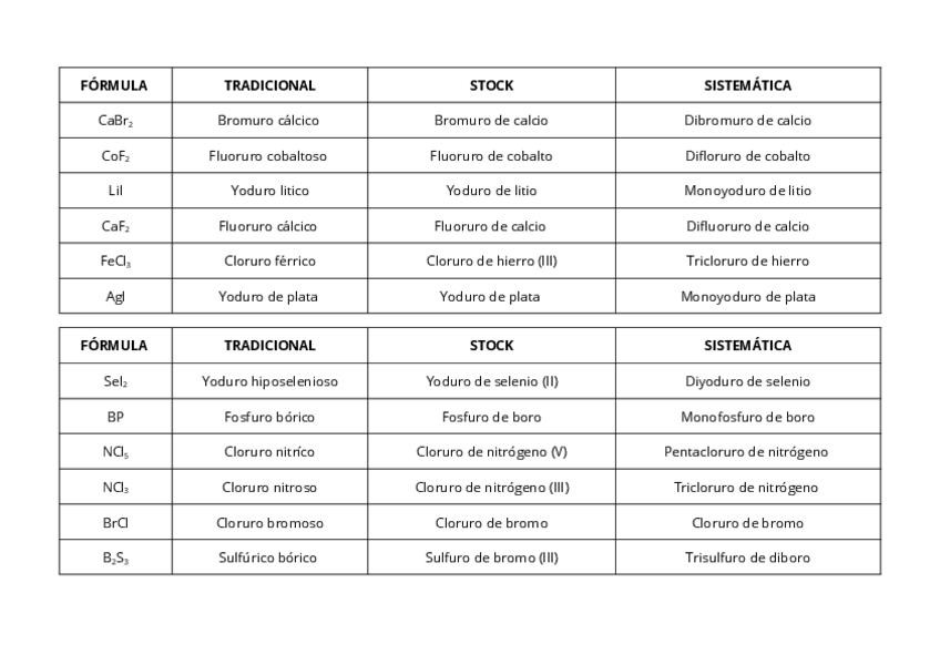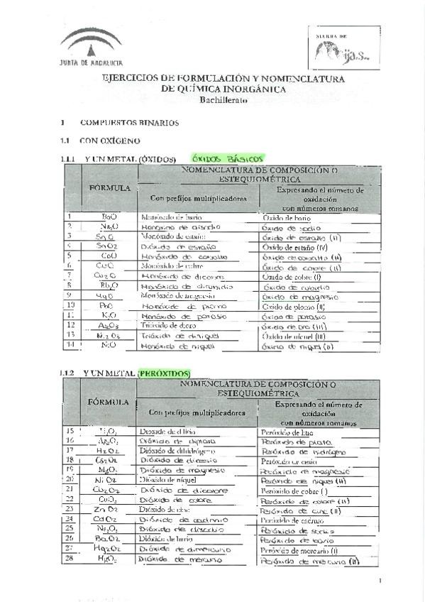 Ejercicios resueltos de formulación y nomenclatura de química inorgánica