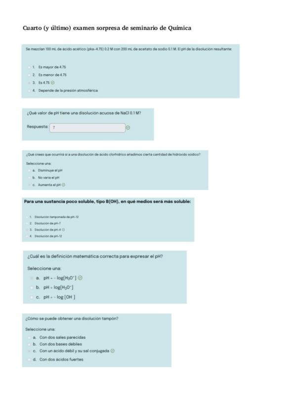 Es el cuarto examen sorpresa (y el último) del seminario de Química.