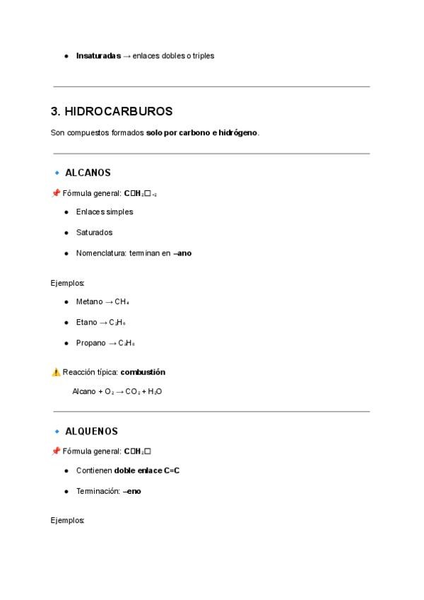 Apuntes de química orgánica esenciales para la Prueba de Acceso a la Universidad. NOTA: FALTAN LAS REACCIONES DE POLIMERIZACIÓN