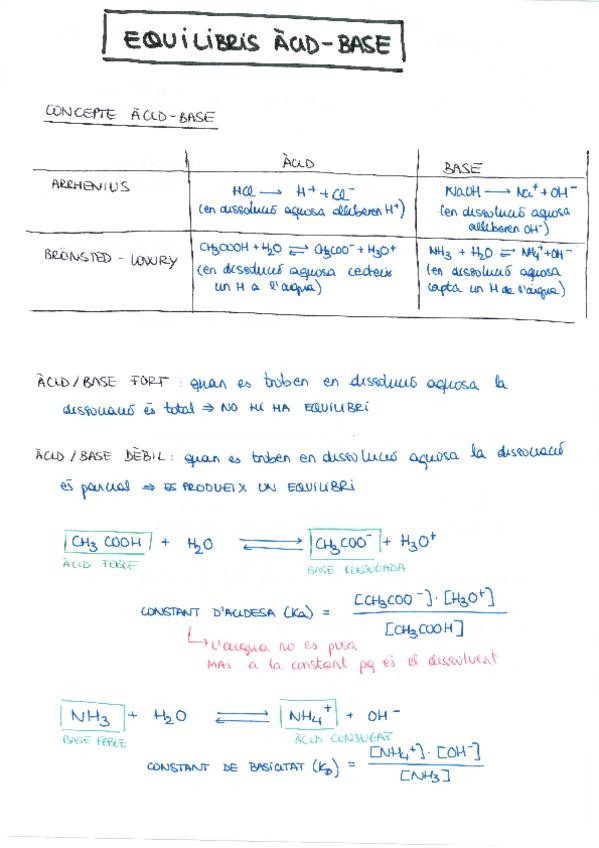 Resum de tots els continguts del tema àcid-base i equilibris iònics de segon de batxillerat