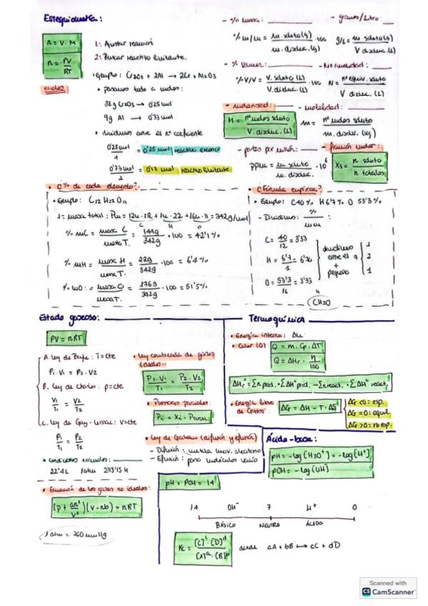 Apuntes tema 3 asignatura de química, con formulario completo y visual y guía para resolver ejercicios