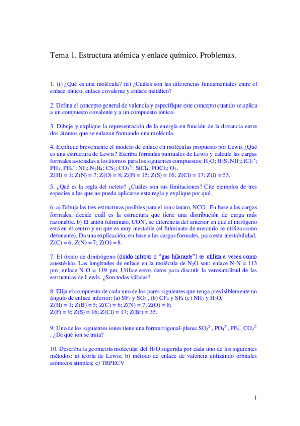 He publicado nuevos ejercicios de 1º Química.: soluciones problemas clase