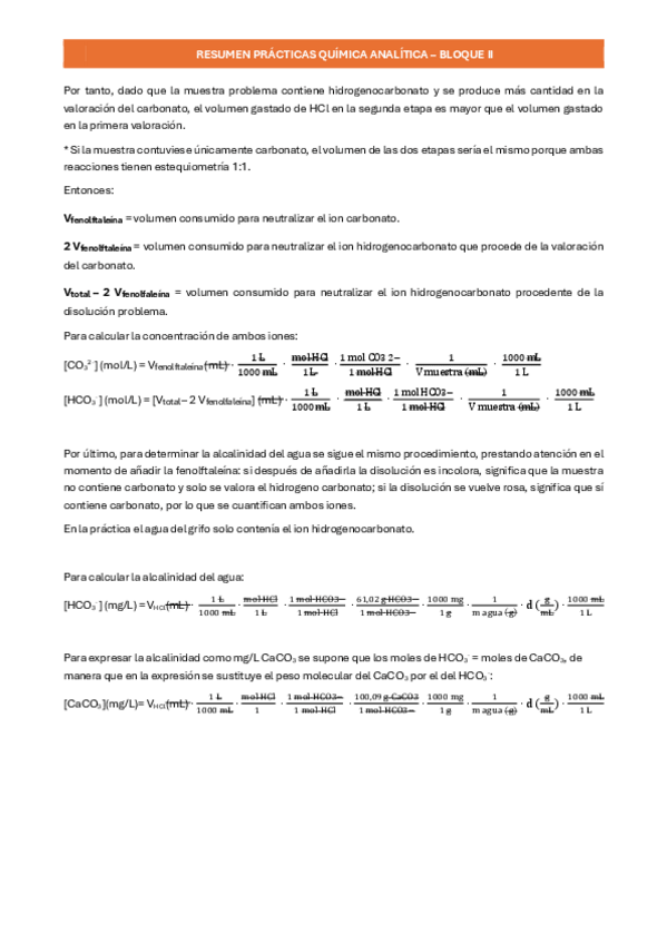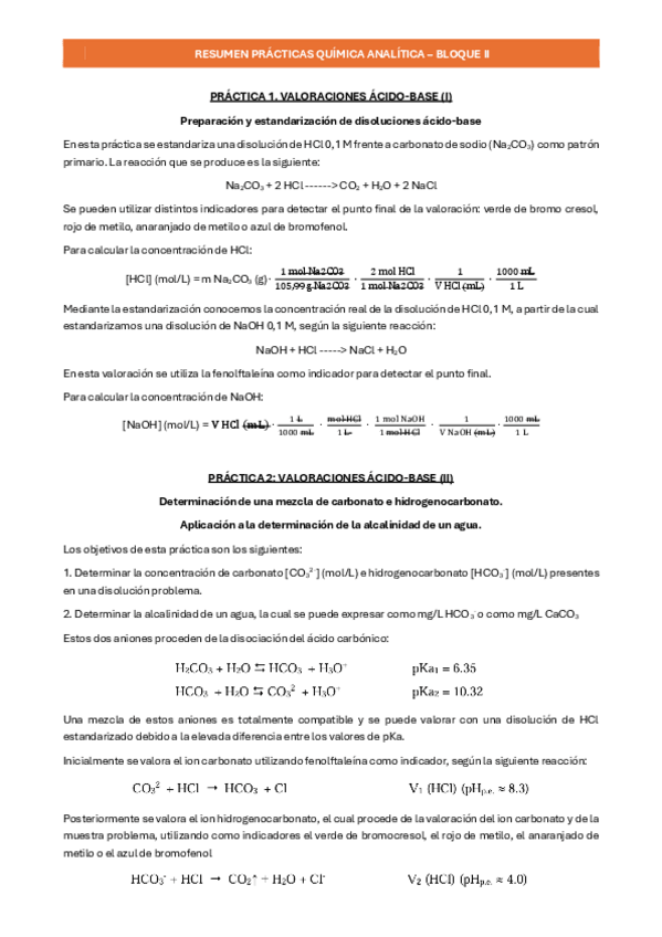 Resumen de las prácticas de Química Analítica I del bloque II - 2º curso