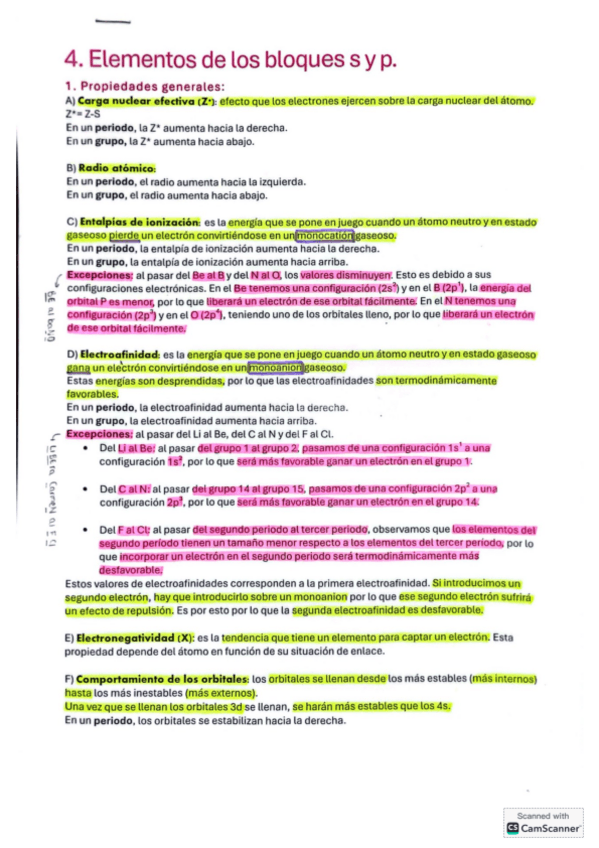 Temas: elementos de los bloques s y p, obtención de los elementos, el hidrógeno y sus compuestos y los gases nobles