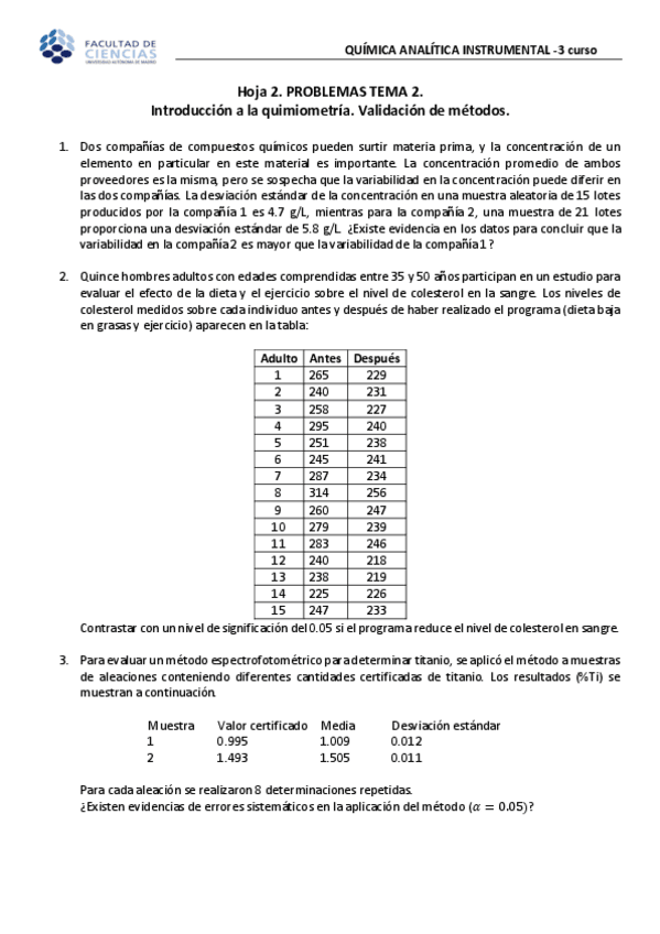 NOTA las rectas de calibrado mejor hacerlas con concentraciones y no con volúmenes. Tb para los de estadística siempre que haya una tabla de datos hay que hacer Q de dixon para descartar datos anómalos antes de hacer la F de fischer